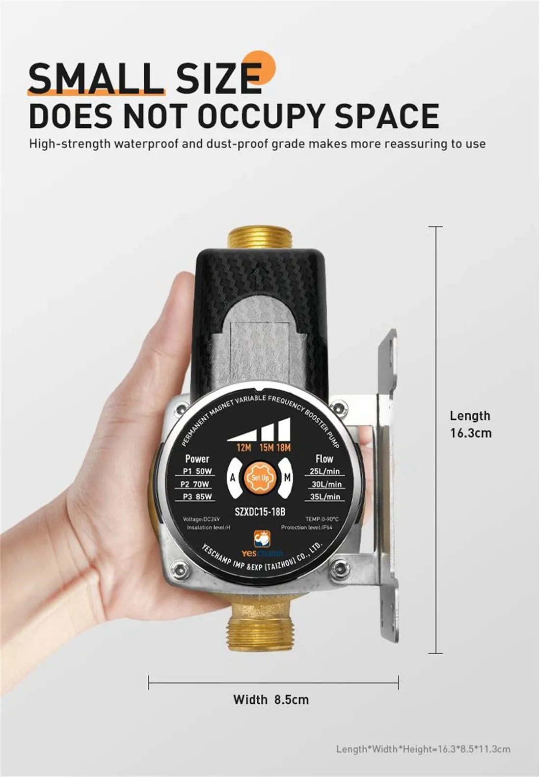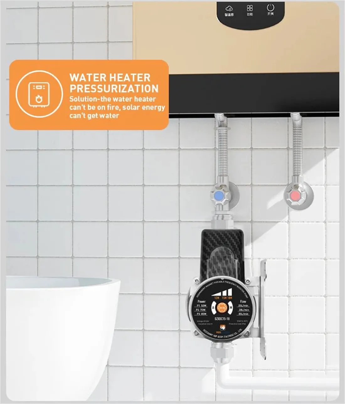 Wide use and light weight: Portable design and energy saving, no leakage, low noise, automatically adjust your needs. Increase household water tank pressure, keep pressure stable, suitable for water supercharger, water heater, solar water heater, shower