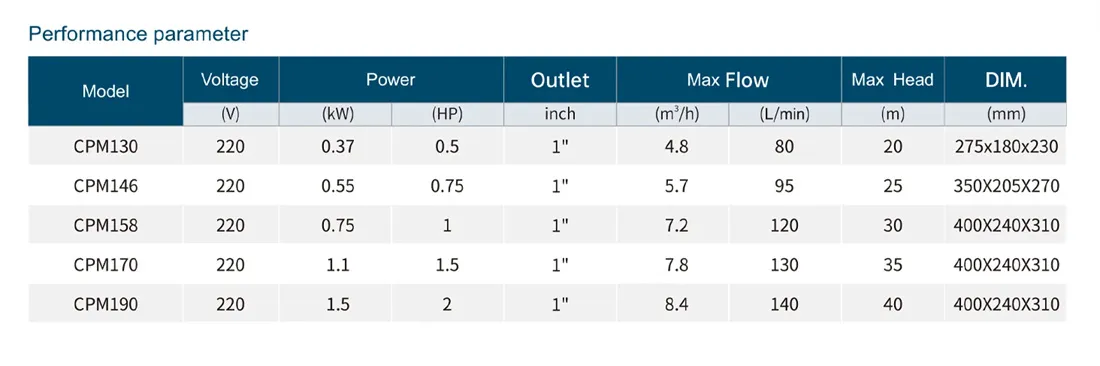 *Liquid temperature up to 60°C *Ambient temperature up to 40℃ *Total suction lift up to 8m
